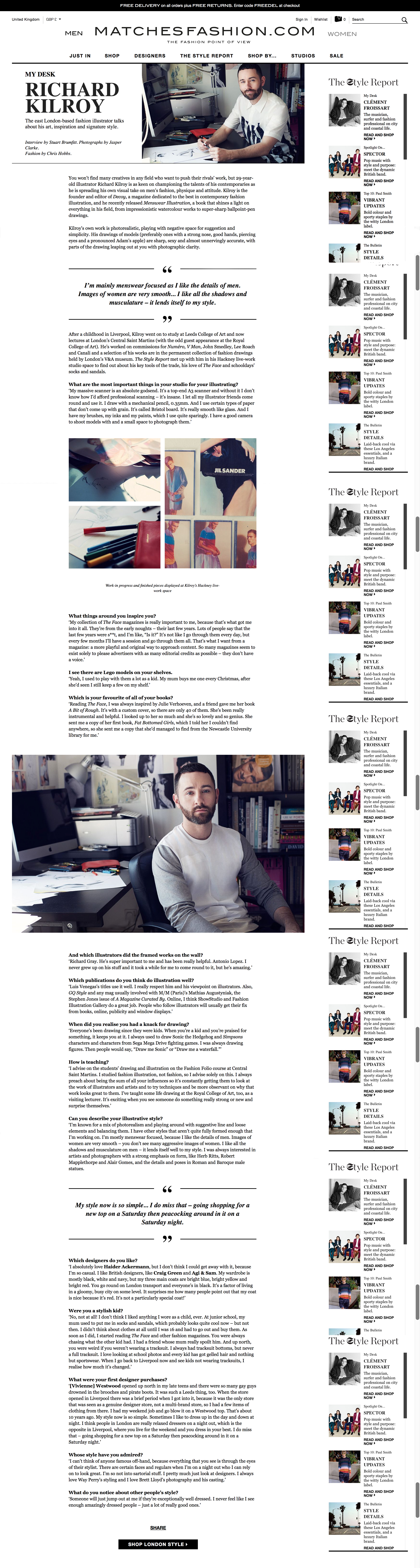 Matchesfashion.com – My Desk: Richard Kilroy. Interview by Stuart Brumfitt, 2015.